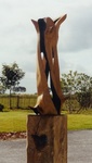 2013“Skywood” Formaat beeld: 120 x 70 x 80 cm Formaat sokkel: geen sokkel Houtsoort: wortel tamme kastanje Bewerkingen: gebrand & gepolijst Opmerkingen: binnen- en buitenlocatie Hangend of liggend