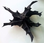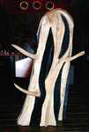 2013“Wings of Jesus Christ” Formaat beeld: 140 x 70 x 25 cm Houtsoort: Christusdoorn Bewerkingen: gebrand en gesableerd Opmerkingen: binnenlocatie Dit werk spreekt boekdelen. Met enige fantasie ontwaar je de vleugels van Christus, geboren uit een boom die naar Hem genoemd is. De venijnige doornen van Jezus'kroon zouden immers van de Christusdoorn (GLEDITSIA TRIACANTHOS) afkomstig zijn. Het druipende bloed goed zichtbaar in het hout staat symbool voor het offer van dit leven. ROBIN UZEEL